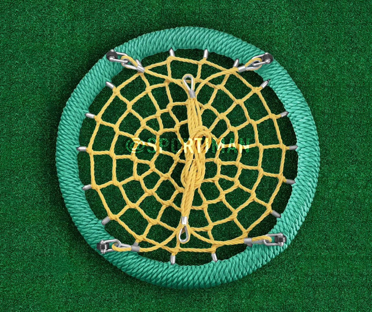 - Каждый конец сети опрессован специальной муфтой, в которой закреплено шарнирное соединение для крепления к основанию (ободу), это гарантирует отсутствие узлов крепления сети