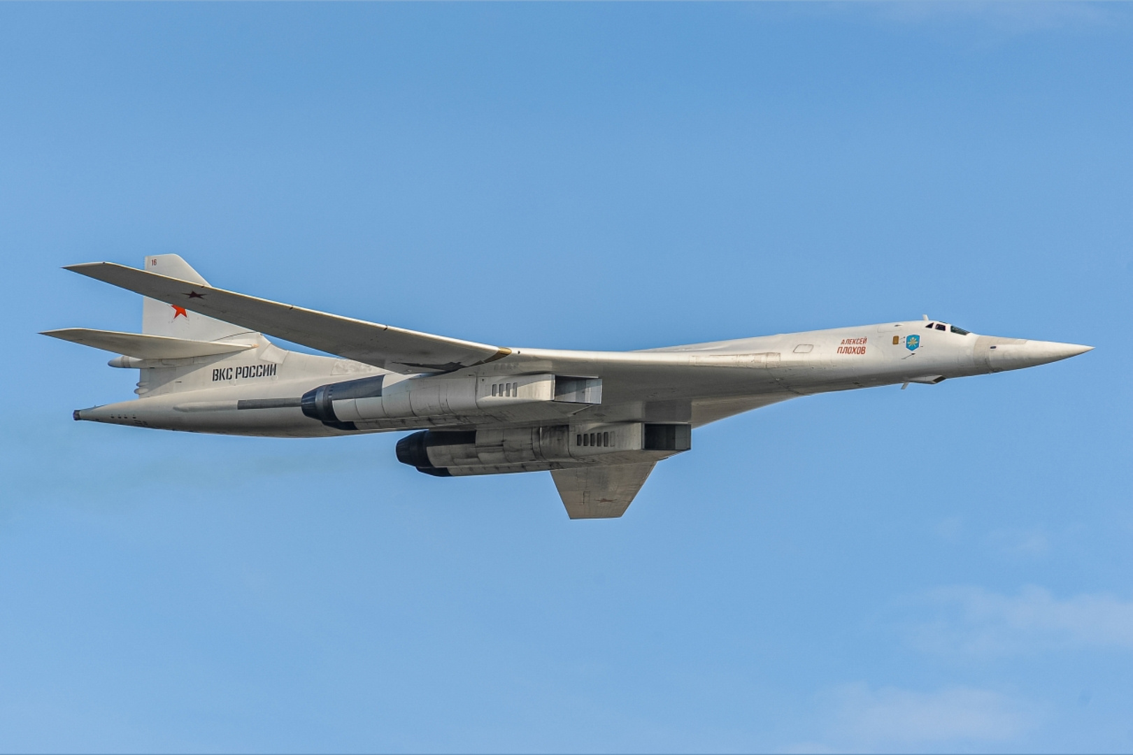 После этого в небе совершили проход два стратегических бомбардировщика Ту-160 и Ту-22М3. Замыкающим в строю шёл Ил-78, воздушный топливозаправщик. Благодаря данному танкеру есть возможность кратно увеличить дальность полëта самолётов, оборудованных системой дозаправки в воздухе.