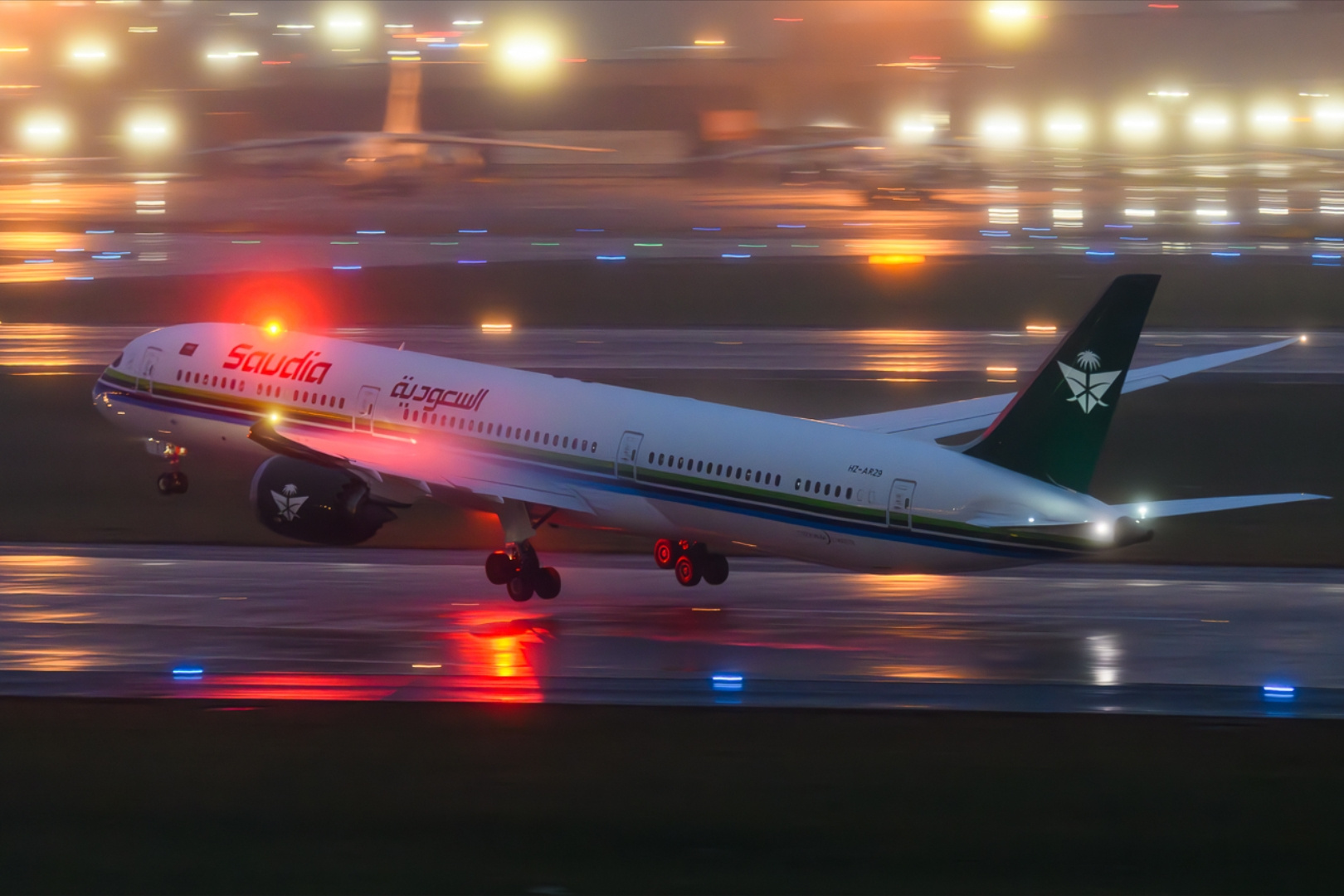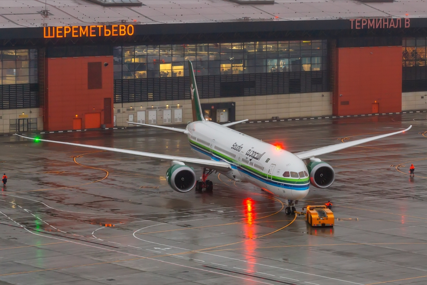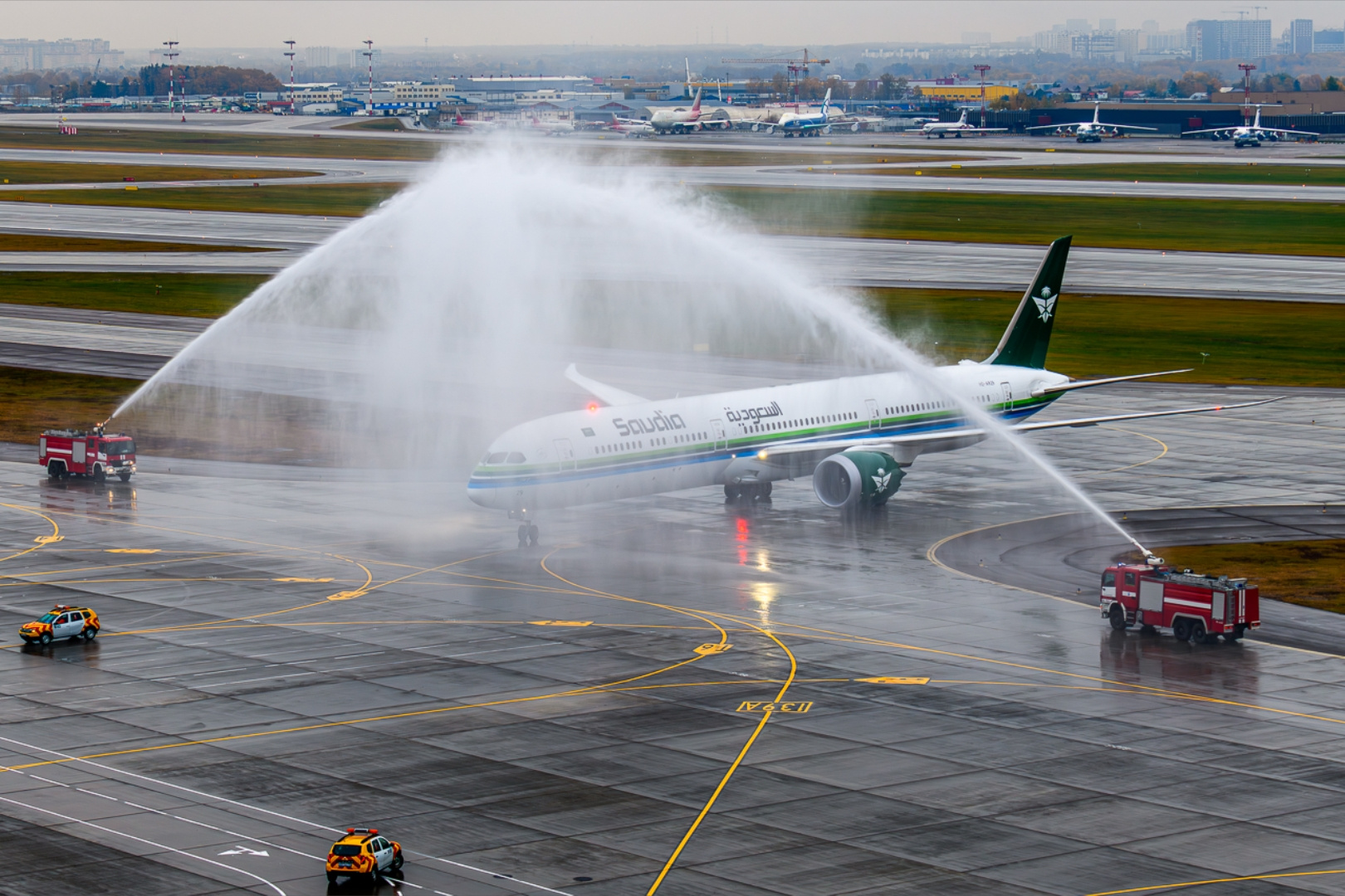 Пассажирский Boeing 787-10 с регистрационным номером HZ-AR29 приземлился в столичном аэропорту около 15:00 по московскому времени. Самолёт был встречен по традиции водной аркой — символом приветствия нового маршрута. На борту находились около 230 пассажиров, включая представителей бизнеса, дипломатов и туристов.