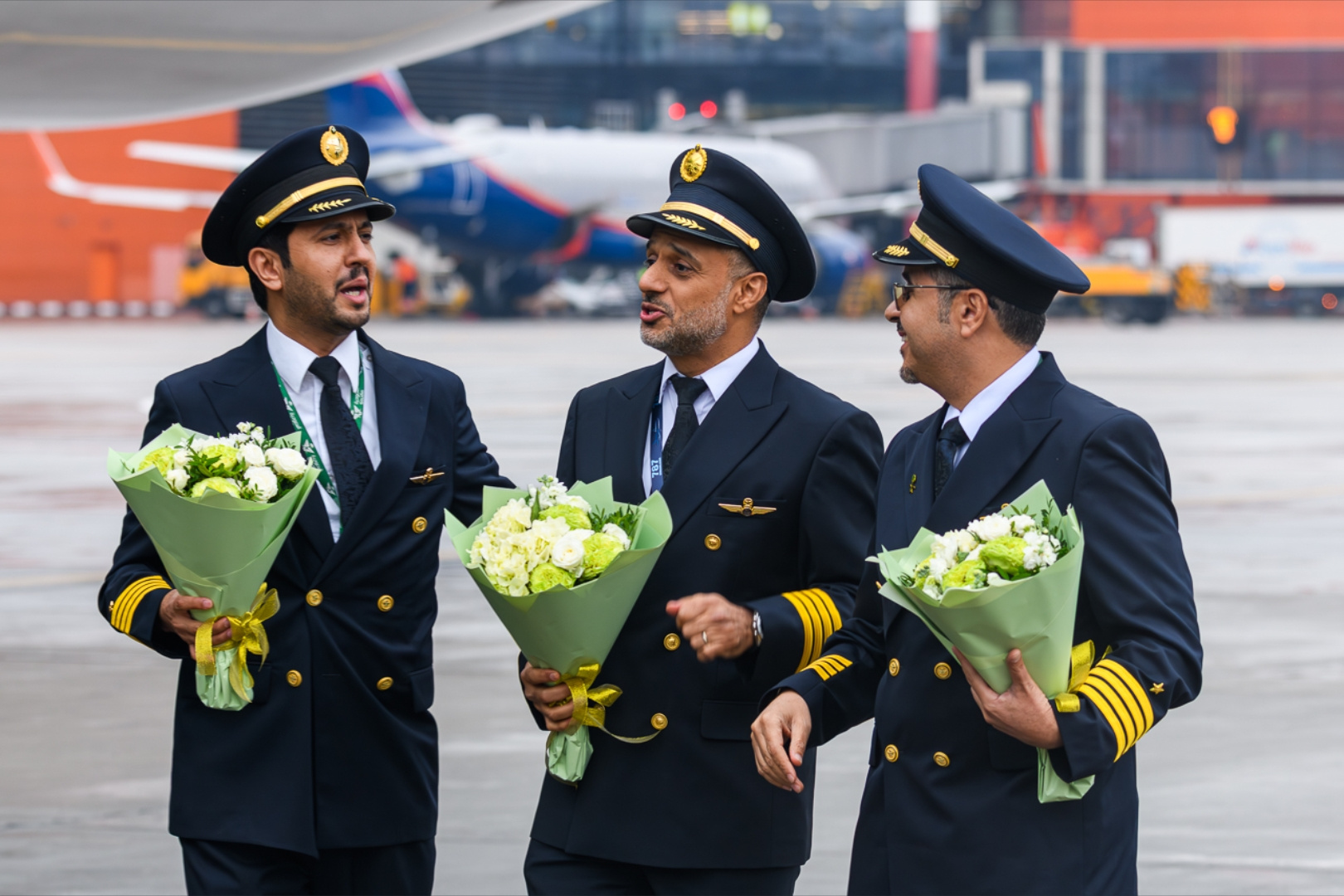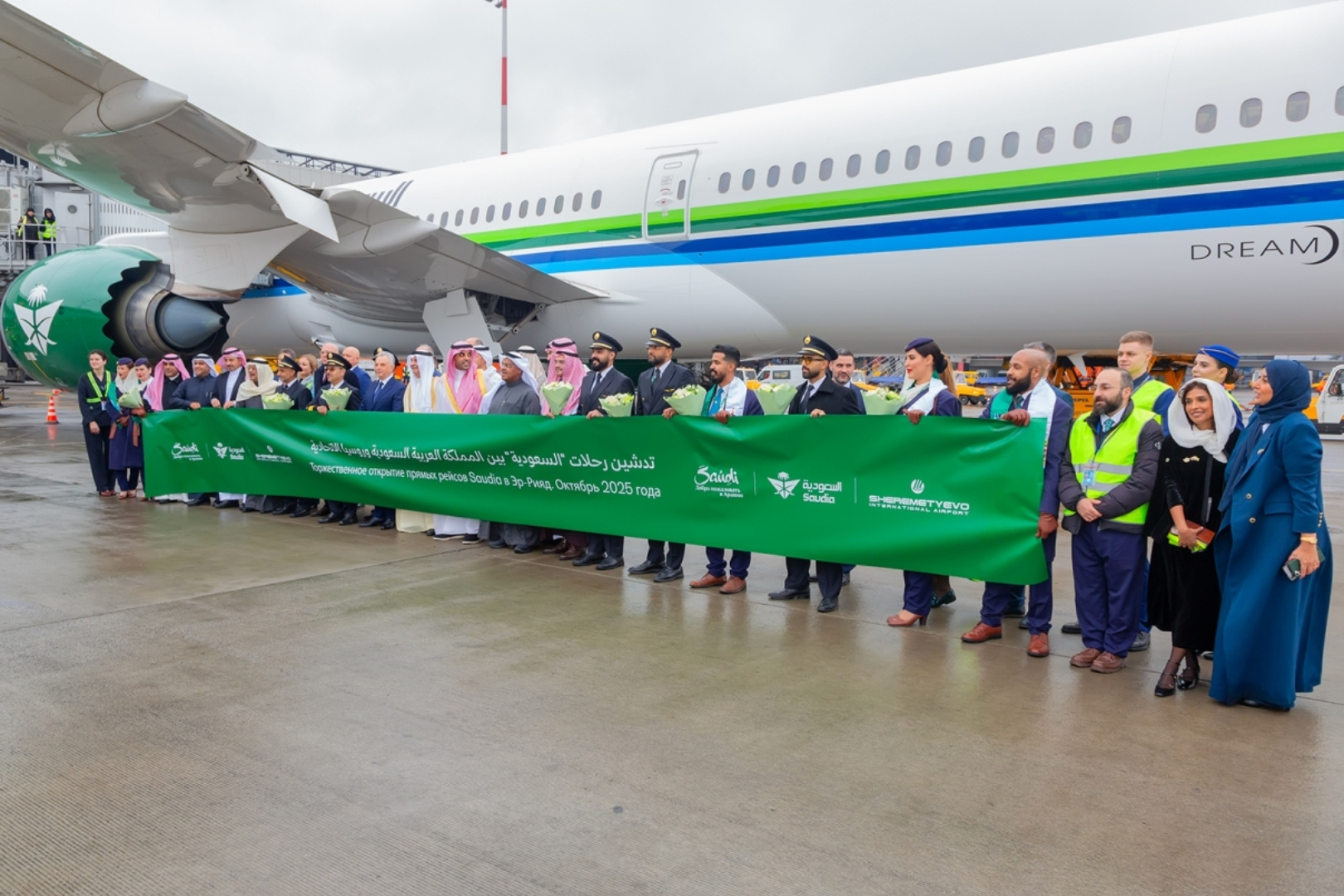 Церемонию встречи украсило участие высокопоставленных лиц. В торжественной части выступили генеральный директор Saudia Ибрагим Аль-Омар, посол Саудовской Аравии в России Сами Аль-Садхан и генеральный директор аэропорта Шереметьево Михаил Василенко.