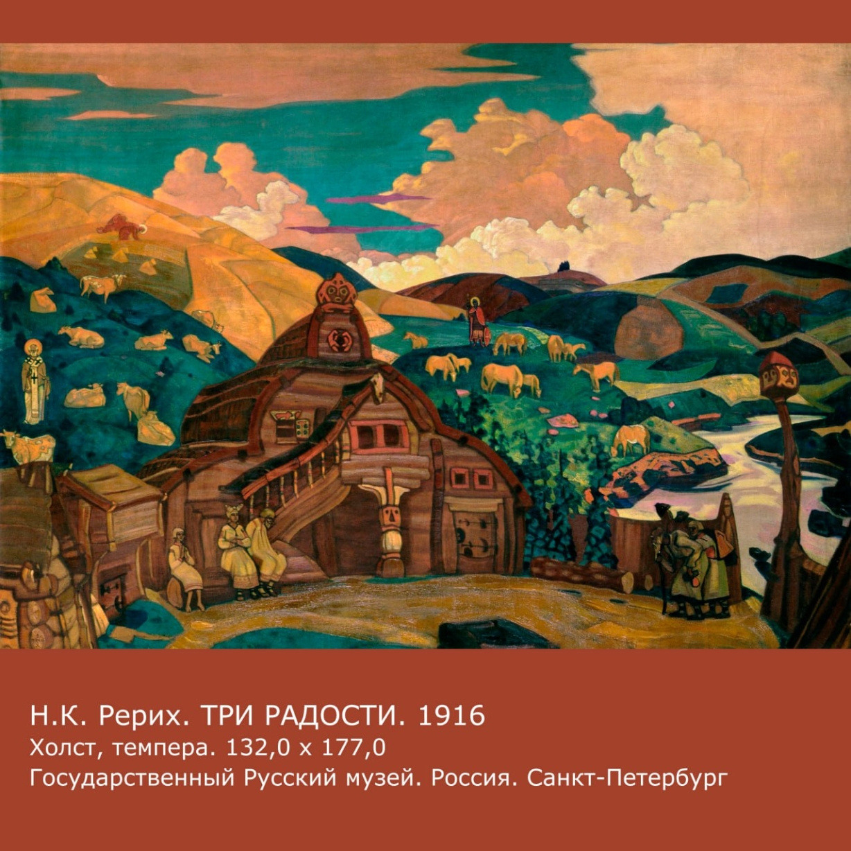 В разгар Первой мировой войны, в 1916 году, Н.К. Рерих написал картину «Три радости». Как и всё, что он делал, это не было случайностью. В эти трудные годы мысли художника направлялись к нашим высоким Заступникам и Покровителям, никогда не оставлявшим Россию в беде.