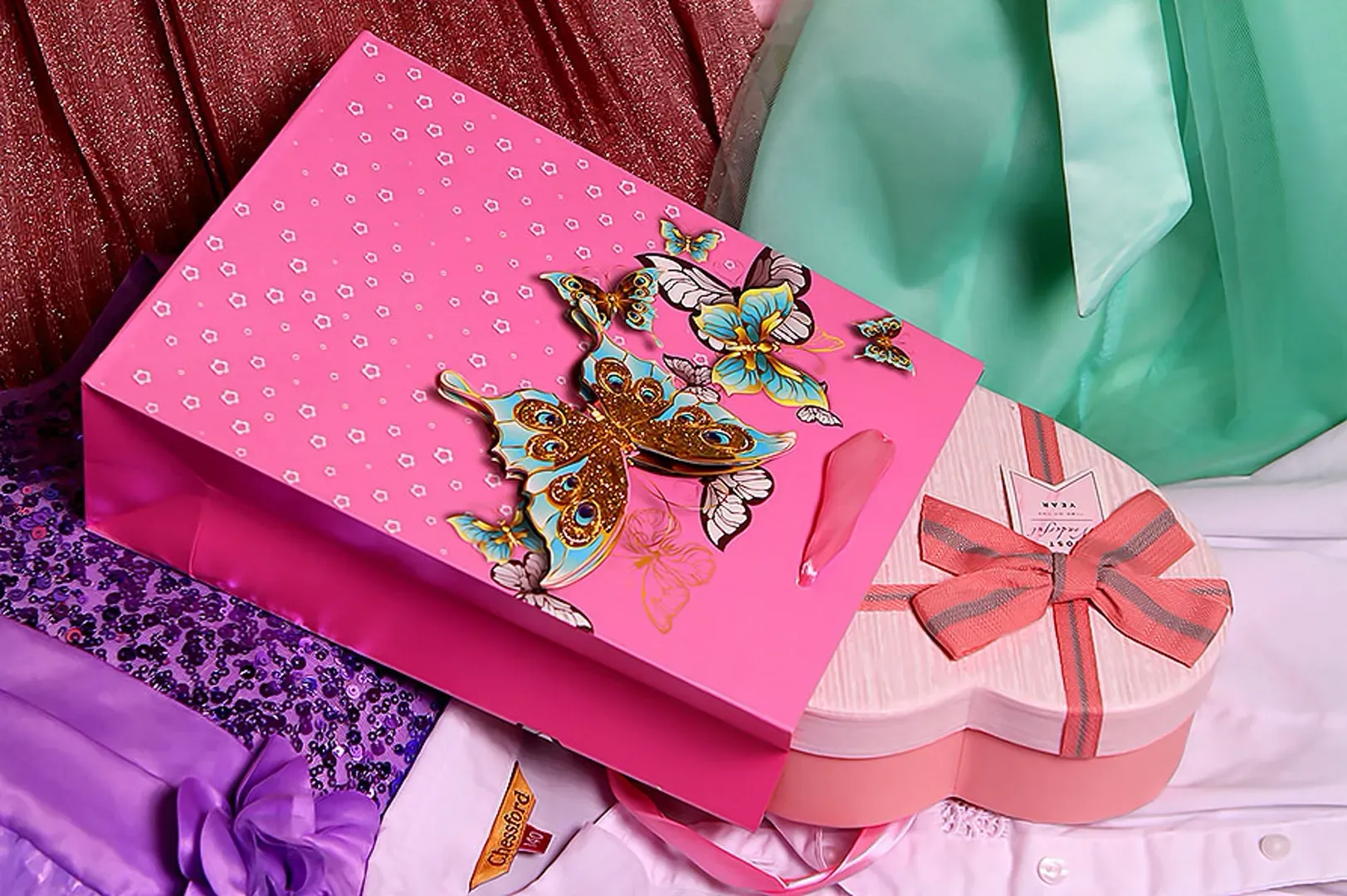 Или #коробкиэлегансграндгифт бантами в виде бабочки украсить из ленты парчовой. Вот так и сложится картина праздника, от которрй бабочки в животе... или в душе, это уж как вам будет угодно, да?