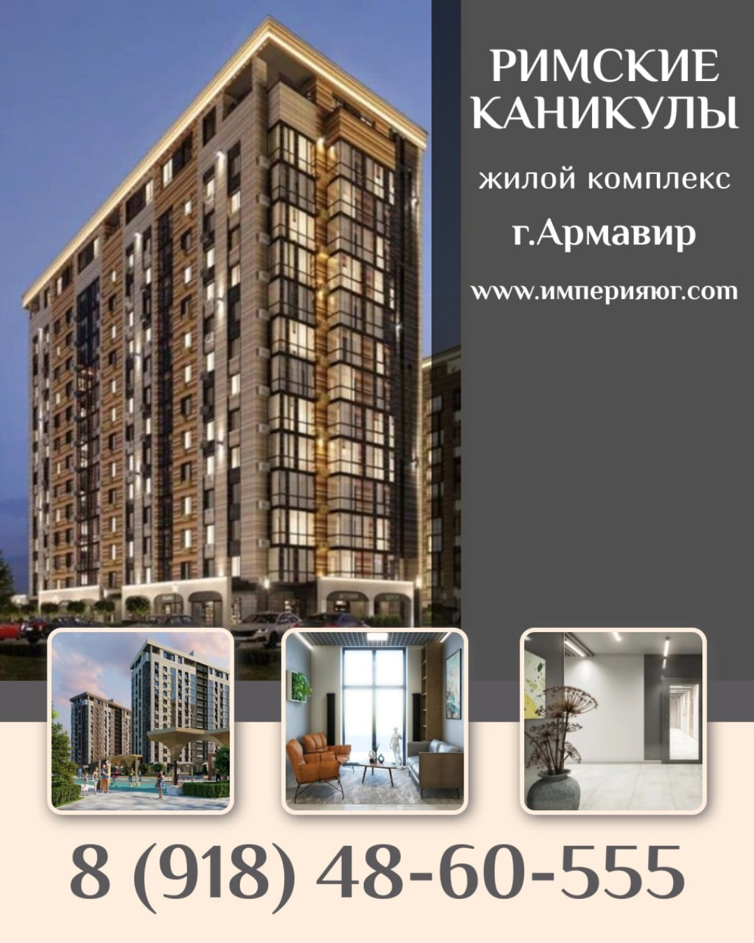 Римские каникулы — жилой комплекс комфорт-класса, расположенный в Северном районе Армавира. ЖК Римские каникулы представляет собой жилой комплекс, состоящий из 4 монолитно-кирпичных 14-этажных дома с современными вентилируемыми фасадами и архитектурной подсветкой.