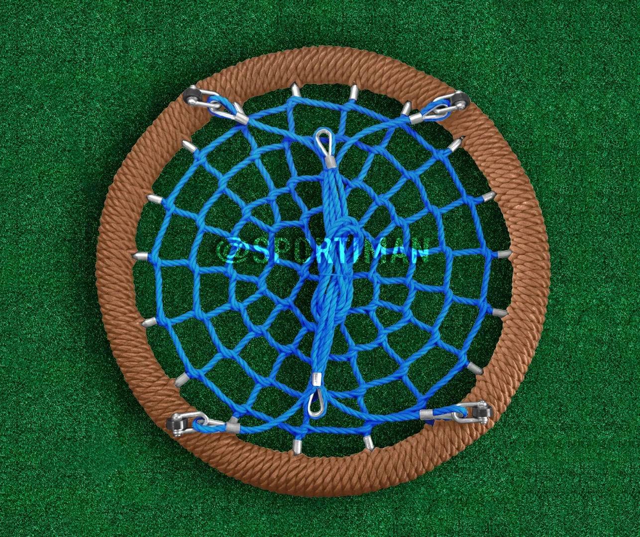 - Каждый конец сети опрессован специальной муфтой, в которой закреплено шарнирное соединение для крепления к основанию (ободу), это гарантирует отсутствие узлов крепления сети